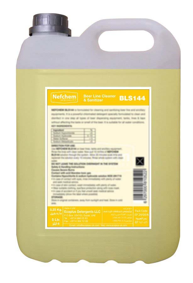 NEFCHEM BLS144 is formulated for cleaning and sanitizing beer line and ancillary equipments. It is a powerful chlorinated detergent specially formulated to clean and disinfect in one step all types of beer dispensing equipment, tanks, lines & taps without affecting the taste or smell of the beer. It is suitable for all water conditions.